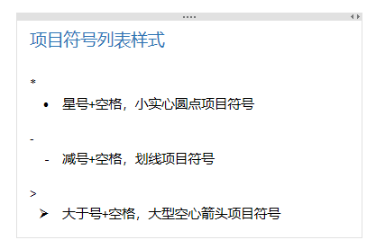 大于号+空格,会生成大型空心箭头项目符号