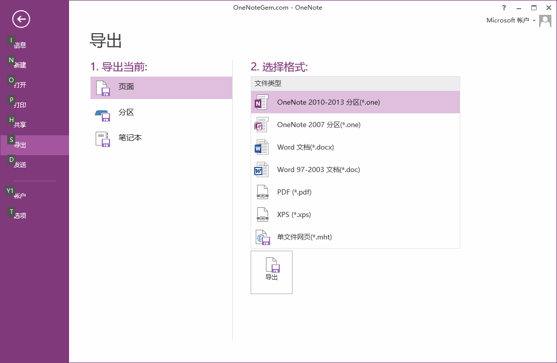 - 选择格式:OneNote 2010 – 2016 分区 (*.one)