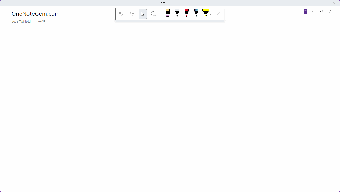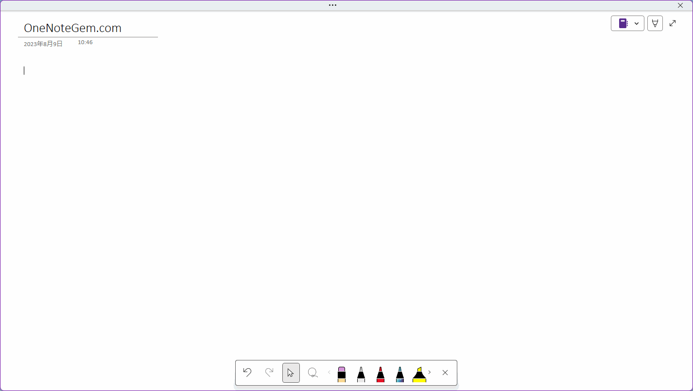 OneNote 2021 在整页视图下,会有个悬浮的笔工具栏,这个工具栏默认放置在窗口的上方。