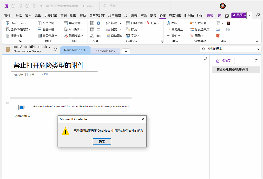 OneNote.exe 打开附件时:管理员已锁定您在 OneNote 中打开此类型文件的能力