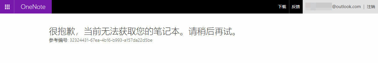当用浏览器登录 onenote.com 后,出现报错:很抱歉,当前无法获取您的笔记本。请稍后再试。
