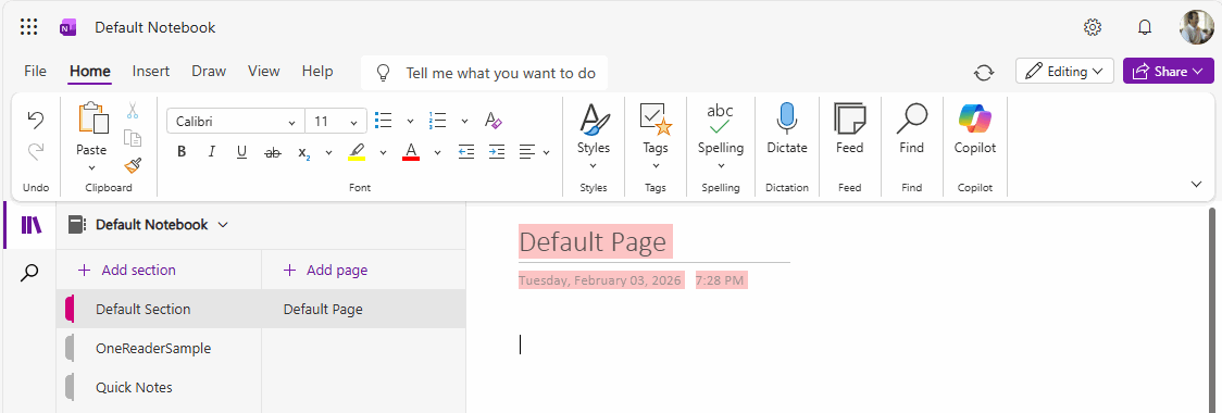 用 Web OneNote 重新打开 Default Notebook 笔记本