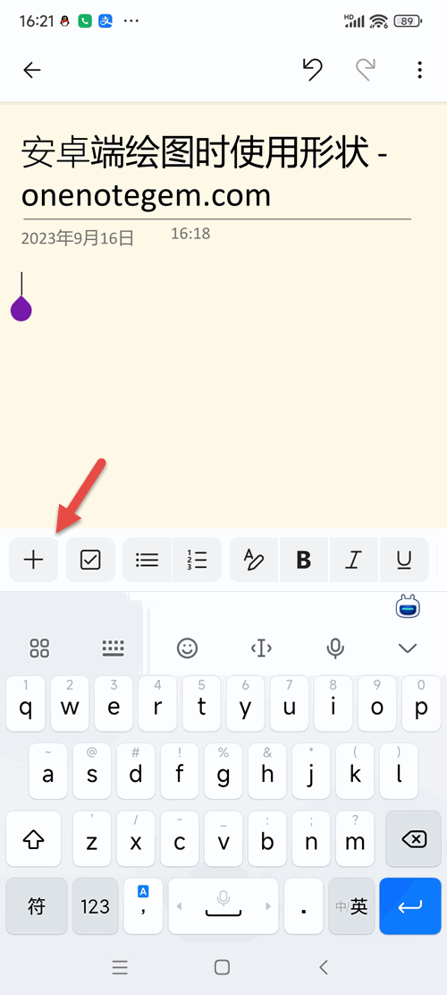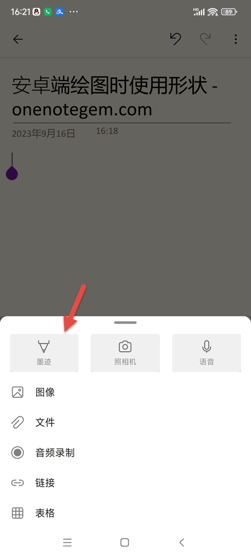 在安卓 OneNote 16.0.17029.20128绘图时使用形状